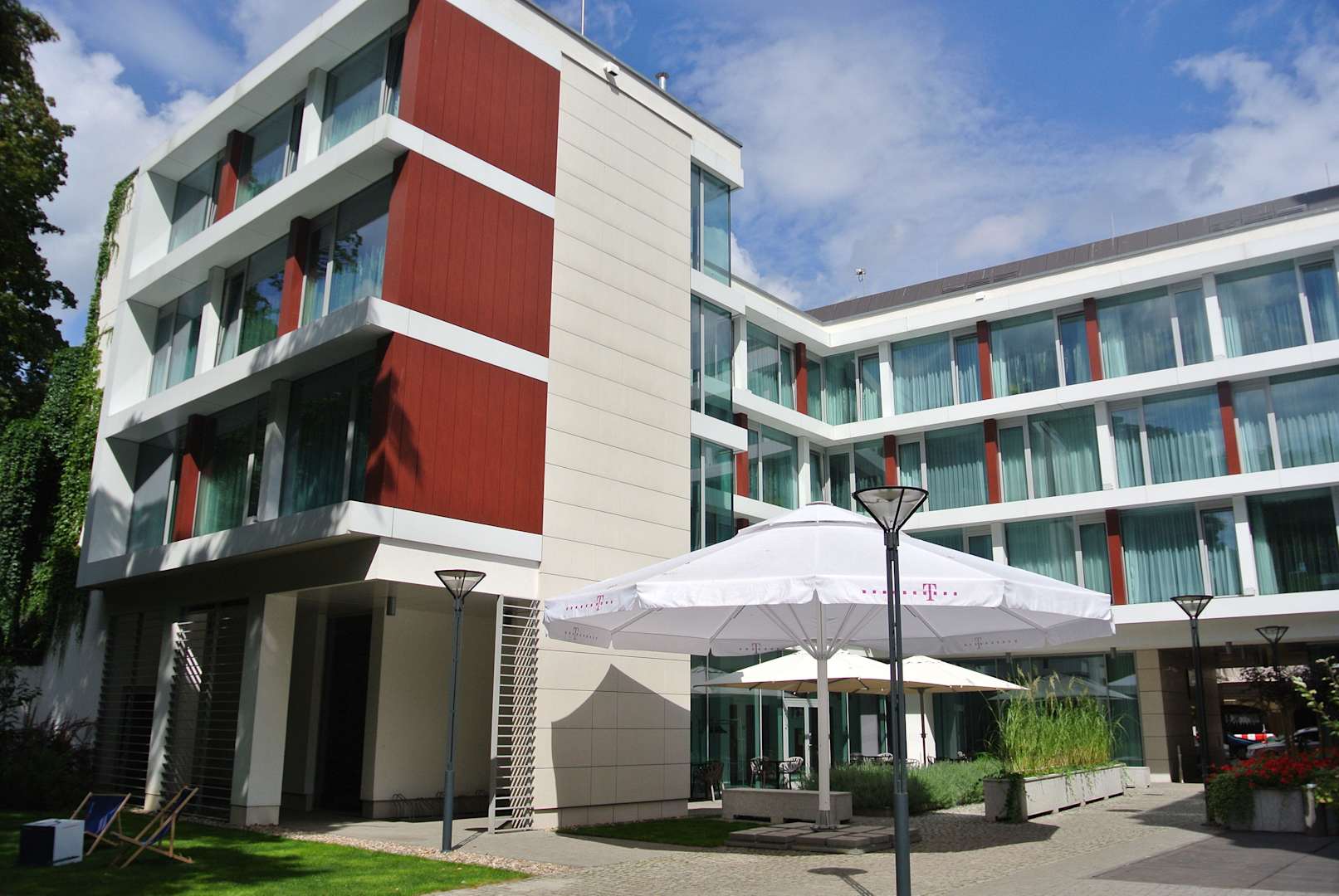 Blick auf das architektonisch sehr gelungen gestaltete Hotel