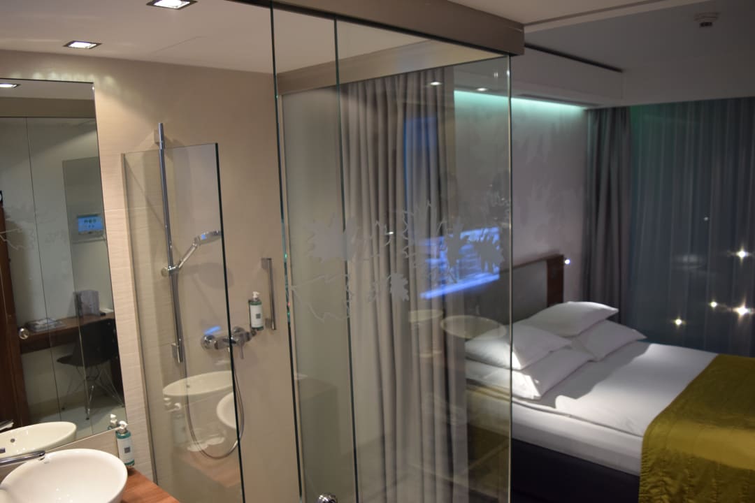 Sehr bequemes Doppelzimmer. Bad und Dusche in einer Art GlasSehr bequemes Doppelzimmer. Bad und Dusche in einer Art Glaskasten untergebracht.