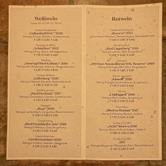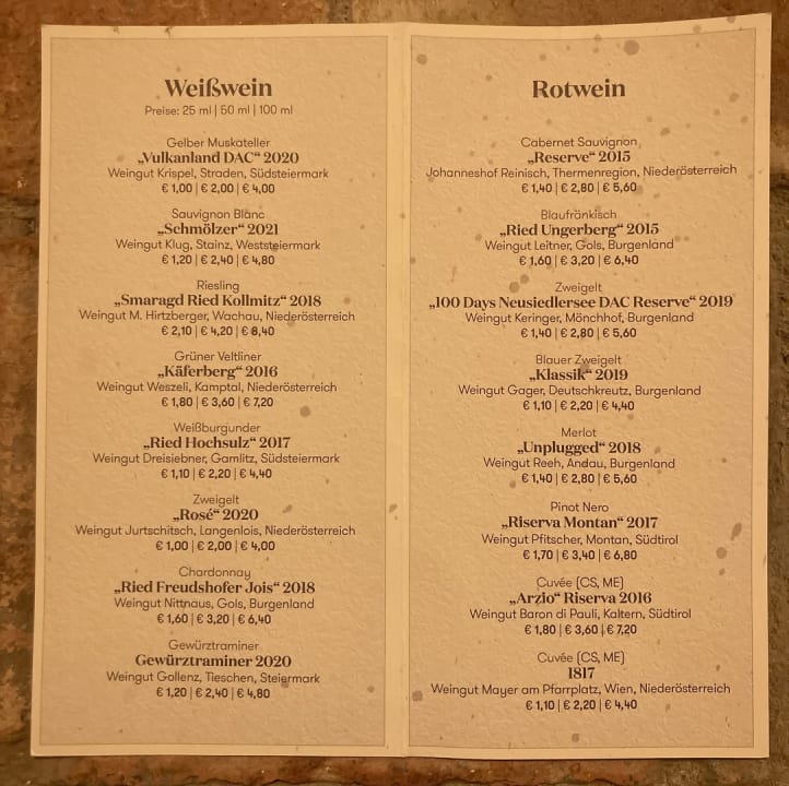 Angebotene Weine, zapfbar mit Zimmerkarte 24/7 im Vineum