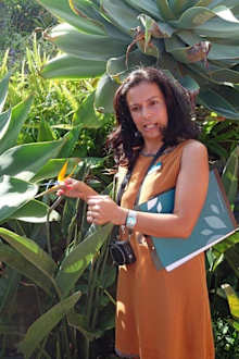 Gästebetreuerin Paula erklärt die Gartenpflanzen