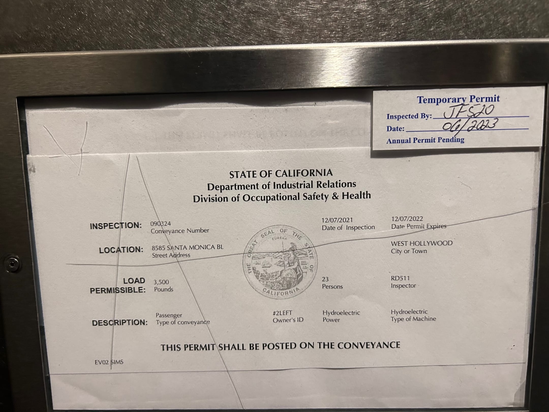 Aufzug wurde seit längerer Zeit nicht gewartet und hat nur eine vorübergehende Betriebserlaubnis