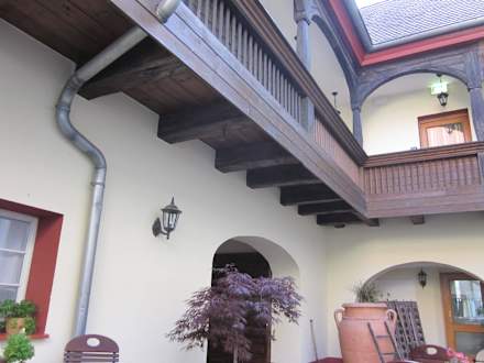 Biergarten u.Blick zu den Zimmern von außen