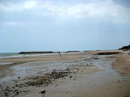der Strand rechts vom Hotel ist sehr steinig und bei Ebbe nicht unbedingt schön.