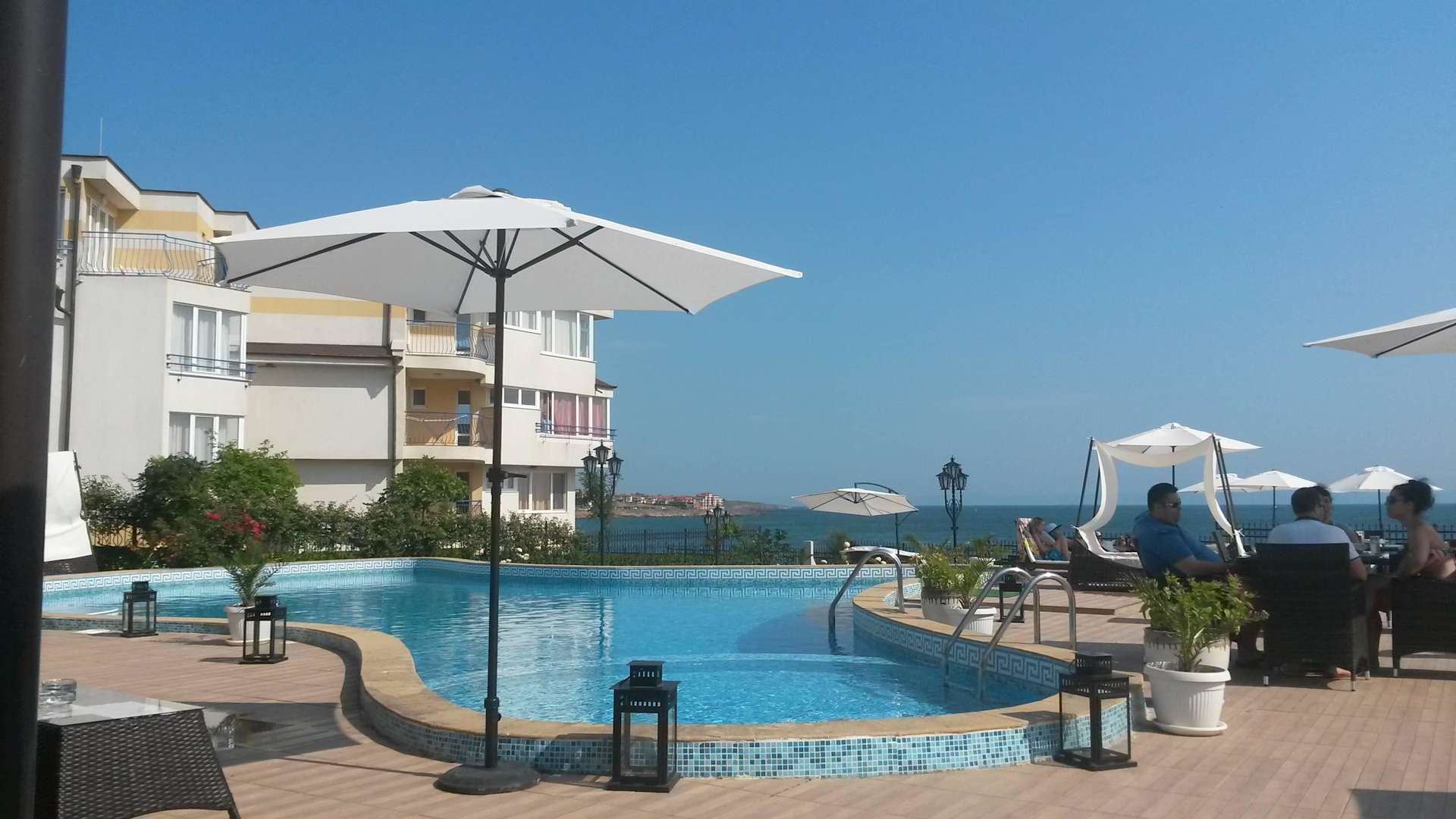 Blick aus dem Restaurant auf den Pool