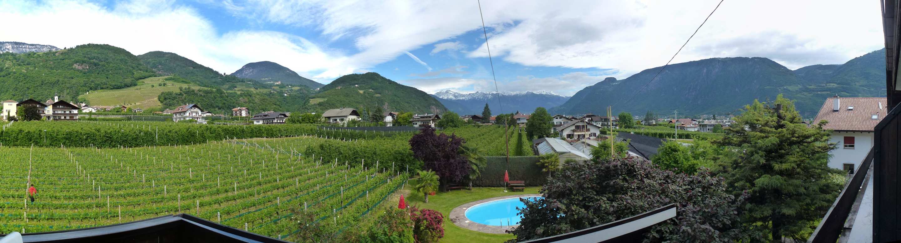 Blick vom Balkon auf Pool und Umgebung