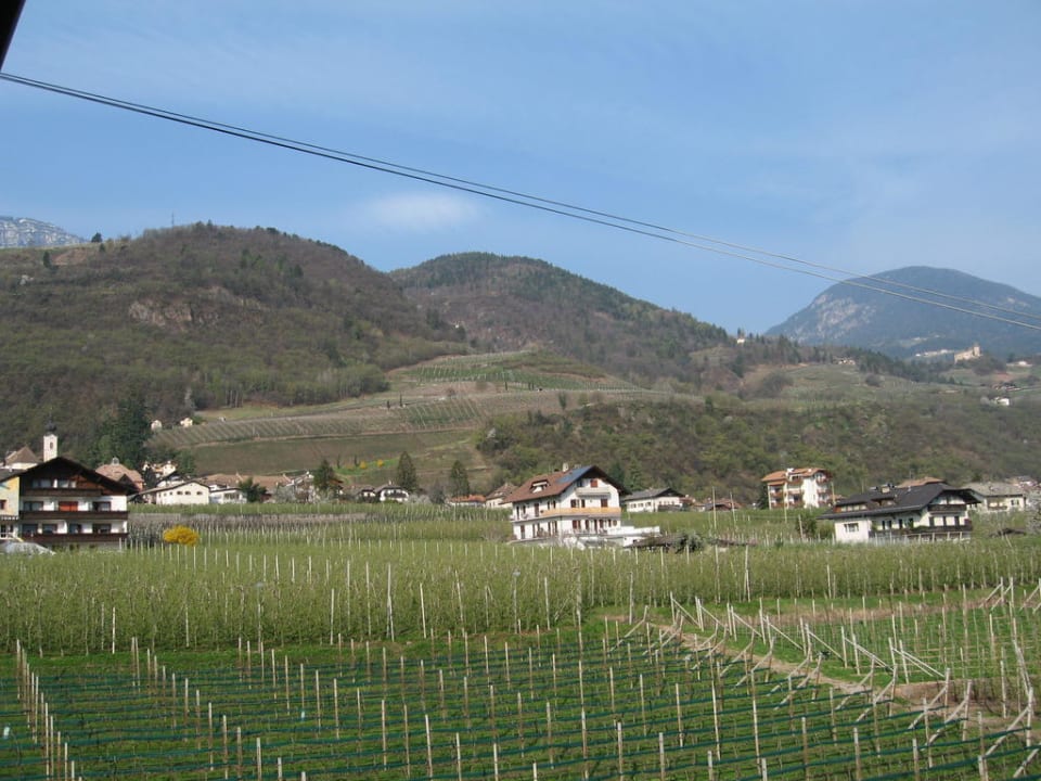 Aussicht vom Balkon in die Apfelplantagen