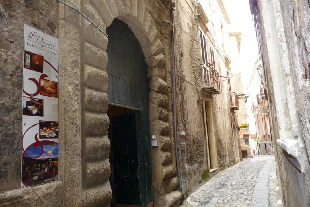 Hoteleingang von einer schmalen Gasse aus