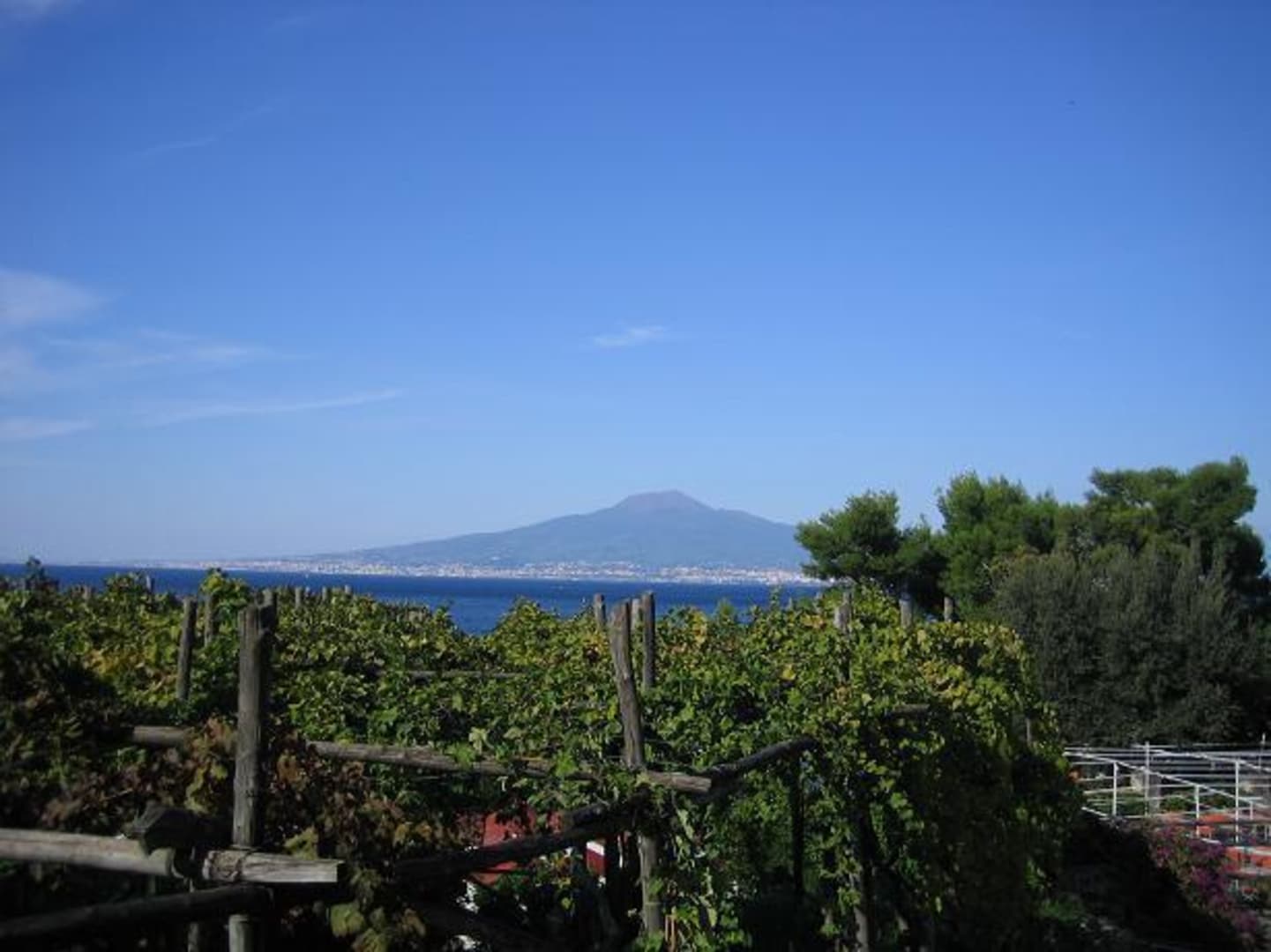 Vesuv Von der großzügigen und gepflegten Hotelanlage dieser Ausblick über den Golf von Neapel auf den Vesuv.