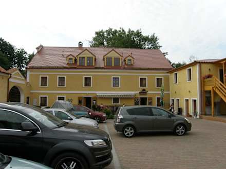 Blick in den Innenhof mit Parkplatz