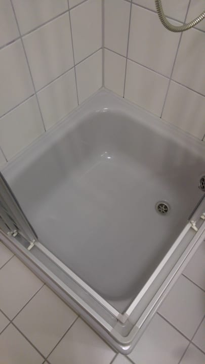 Eine viel zu kleine Dusche in der man sich nur sehr eingeschränkt bewegen konnte.