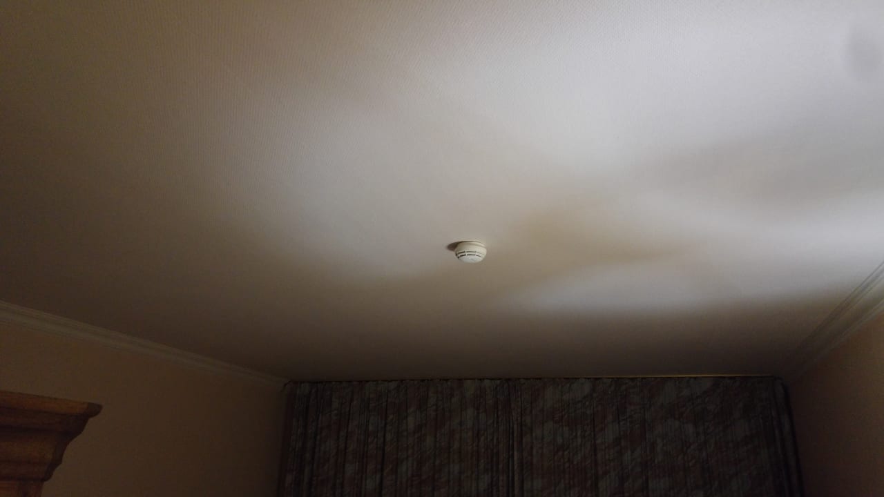 Zimmerkaum Beleuchtung auf dem Zimmer. Lediglich eine Stehlampe sowie eine Deckenlampe im Eingangsbereich des Zimmers waren vorhanden.