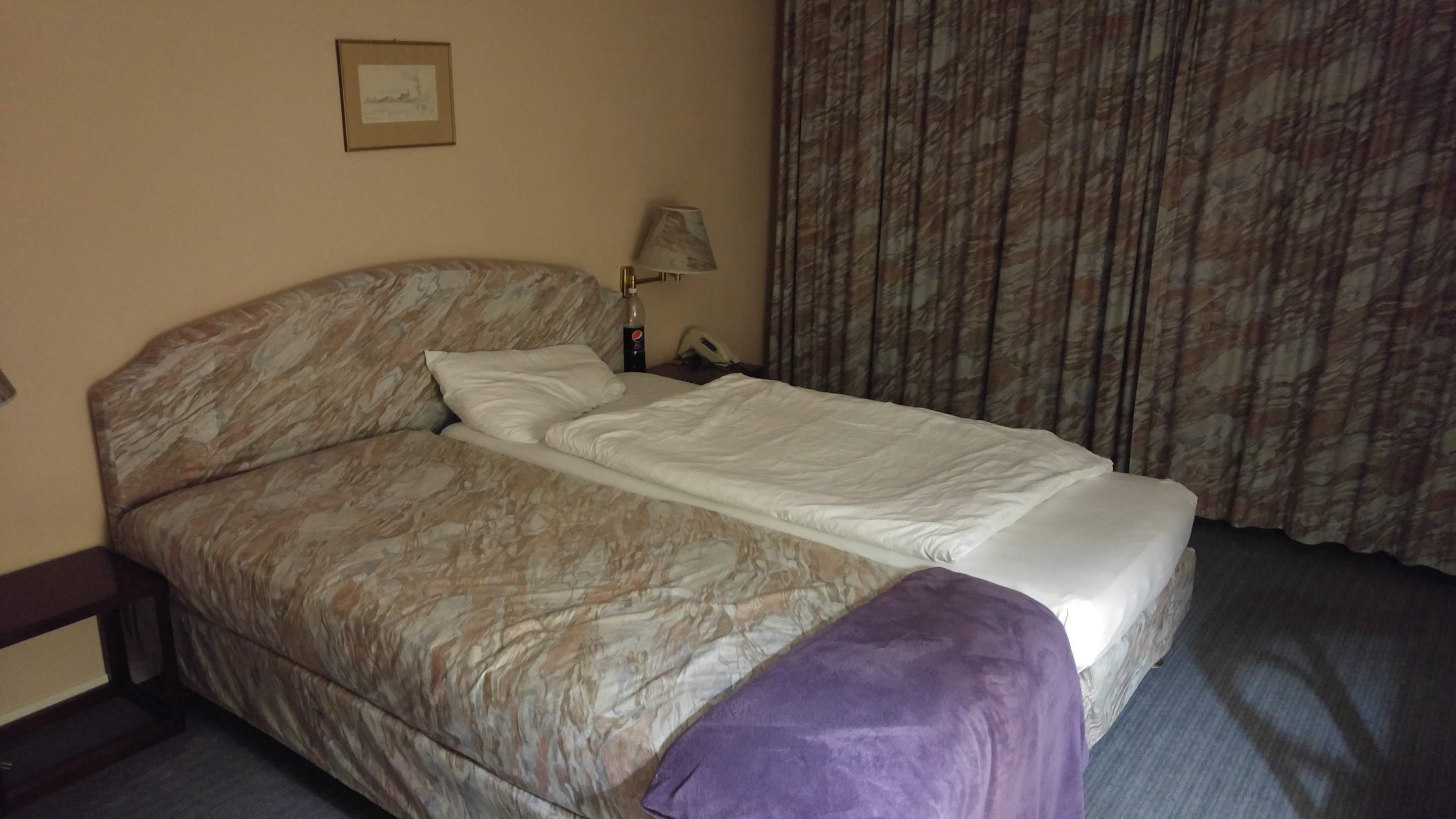 Doppelbett, welches lediglich einseitig bezogen wurde.