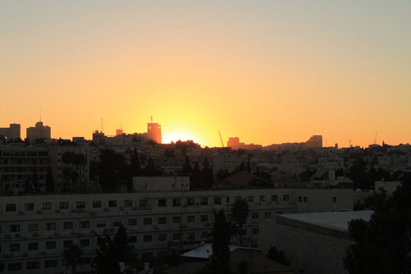 Blick von der Dachterrasse auf den Sonnenuntergang