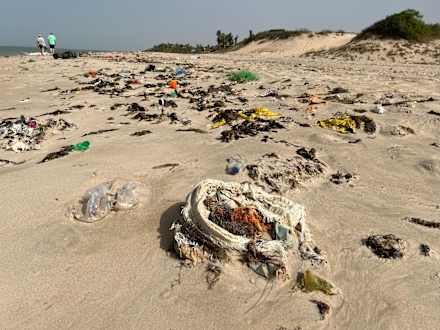 Strand nördlich des Hotelstandes bei Flut, bei Ebbe war es besser spazieren zu gehen.