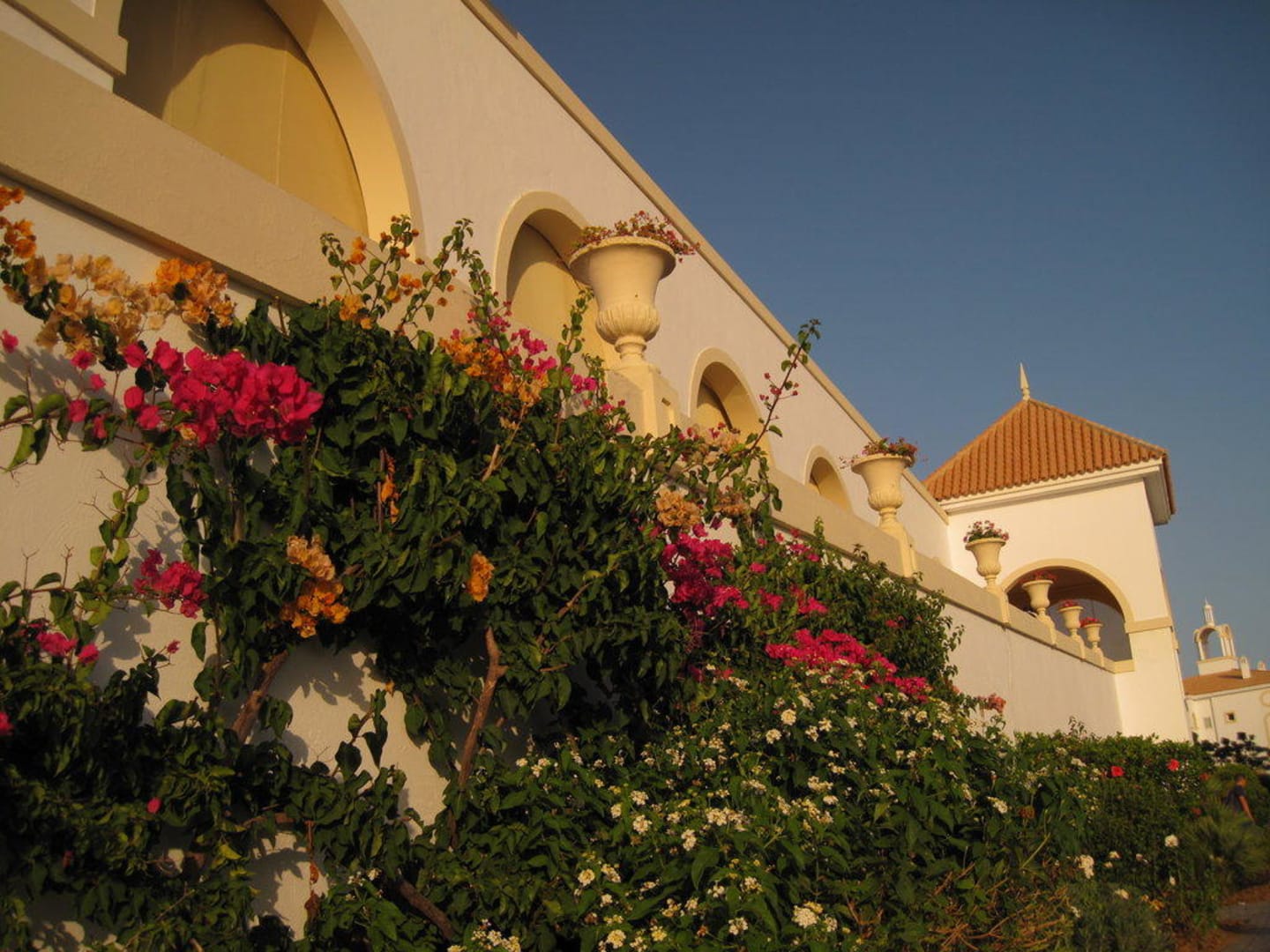 Blumengeschmückter Aufgang ins Hauptrestaurant