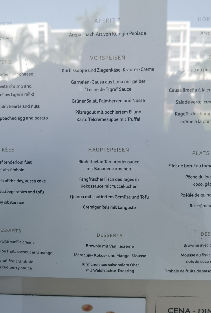 ... und die zugehörige Speisekarte