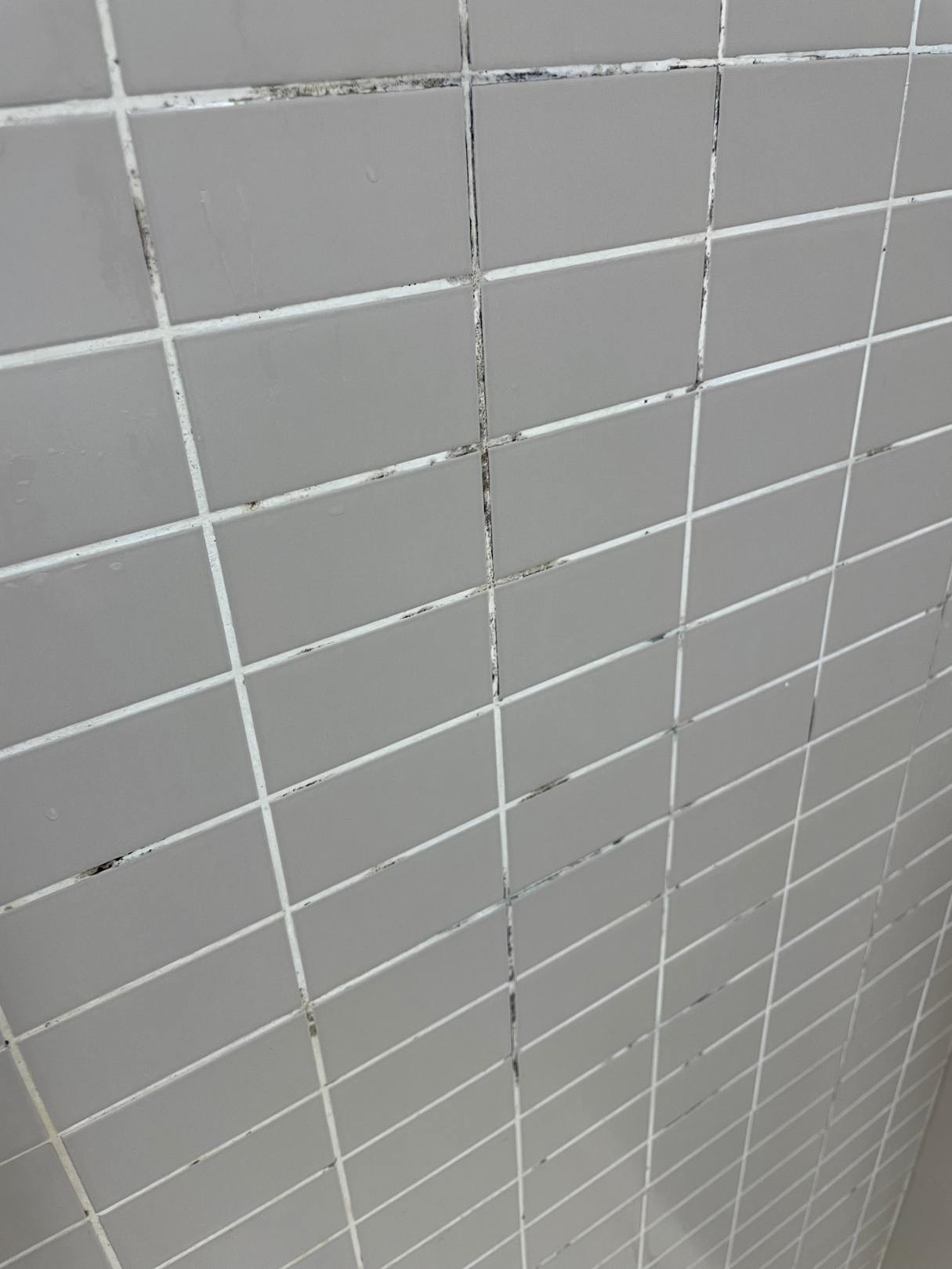 ZimmerSchwarzer Schimmel in Dusche (Nahaufnahme)