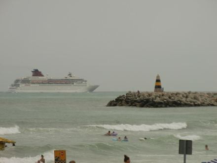 Blick am Strand aus zum Hafen von Benalmadena