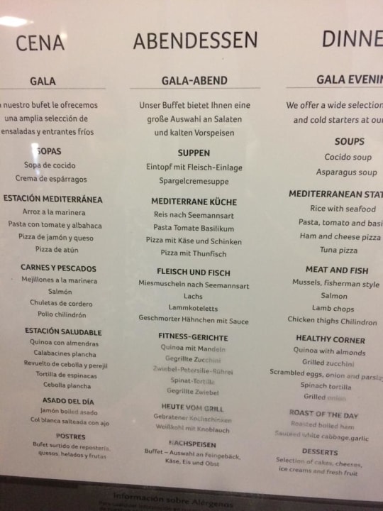 Speisekarte Buffetrestaurant 17.08.2023