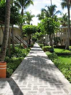 Der Weg vom Strand zum Zimmer durch den Palmengarten