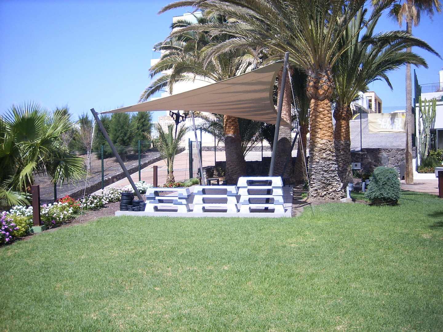 Blick auf den Außenfitnessbereich