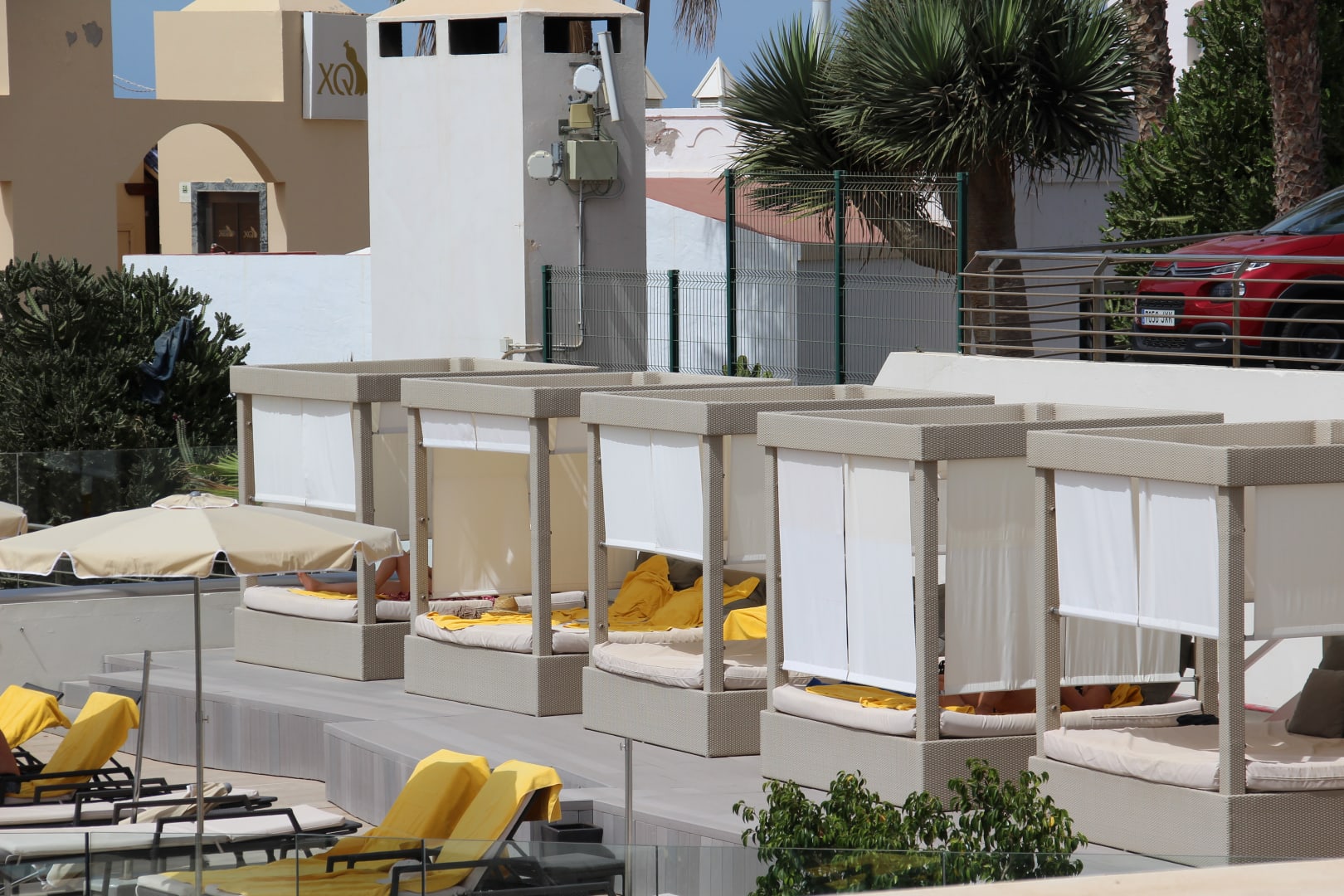 Ruheterasse vor dem SPA-Bereich: Tolle "Himmelbetten" mit Sonnenschutz, sehr bequem, man kann gar nicht NICHT einschlafen. Schön ruhig, Service bringt sogar Getränke...