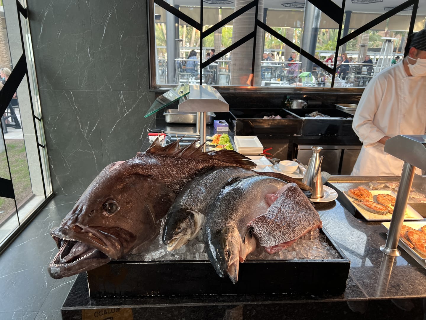 Frischer Fisch in der Show Küche.