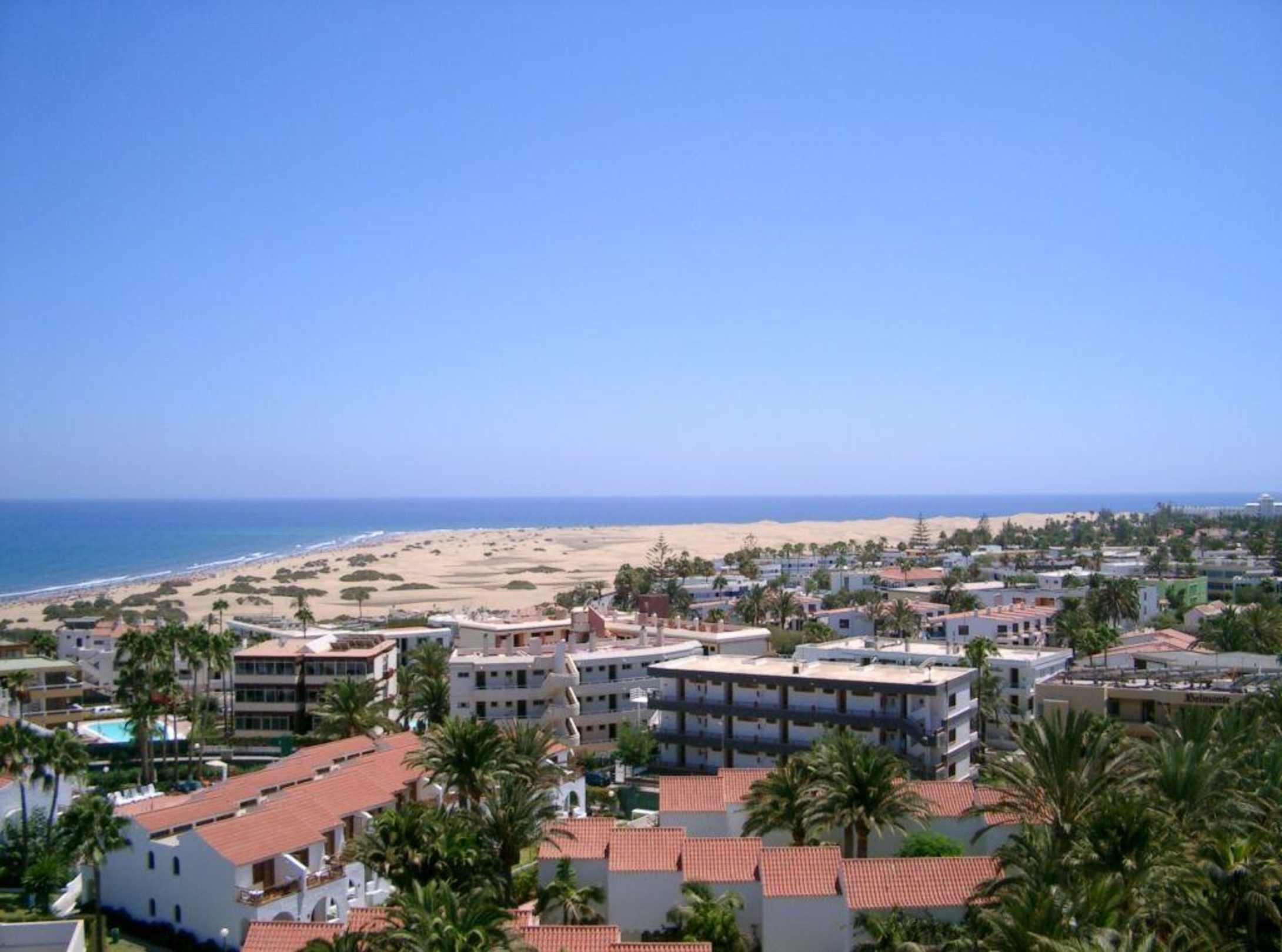 Blick zum Meer vom RIU PalmerasZeigt den Blick zum Meer vom RIU Palmeras, Spanien, Gran Canaria, Playa del Ingles.