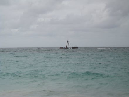 Blick vom Strand aus auf das Wrack