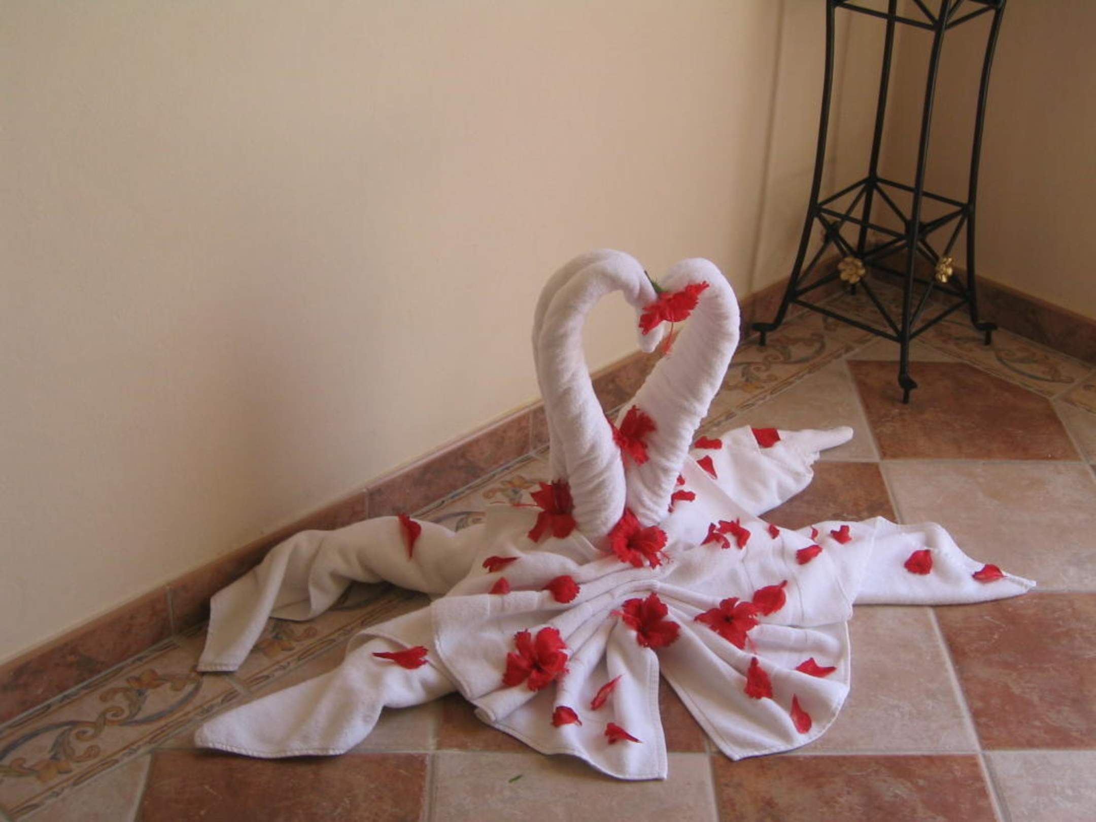 Diese Handtuchschwäne standen im Flur, fast vor unserer Tür. :)