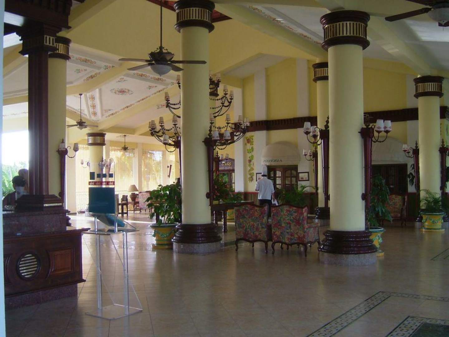 Blick auf Lobby und Pizzeria