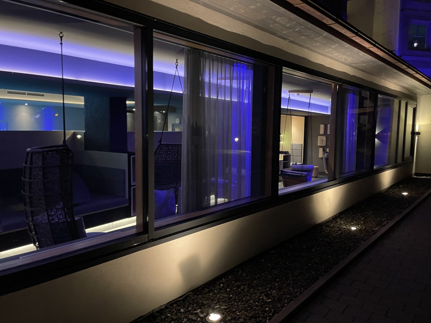 Der Wellnessbereich am Abend von außen