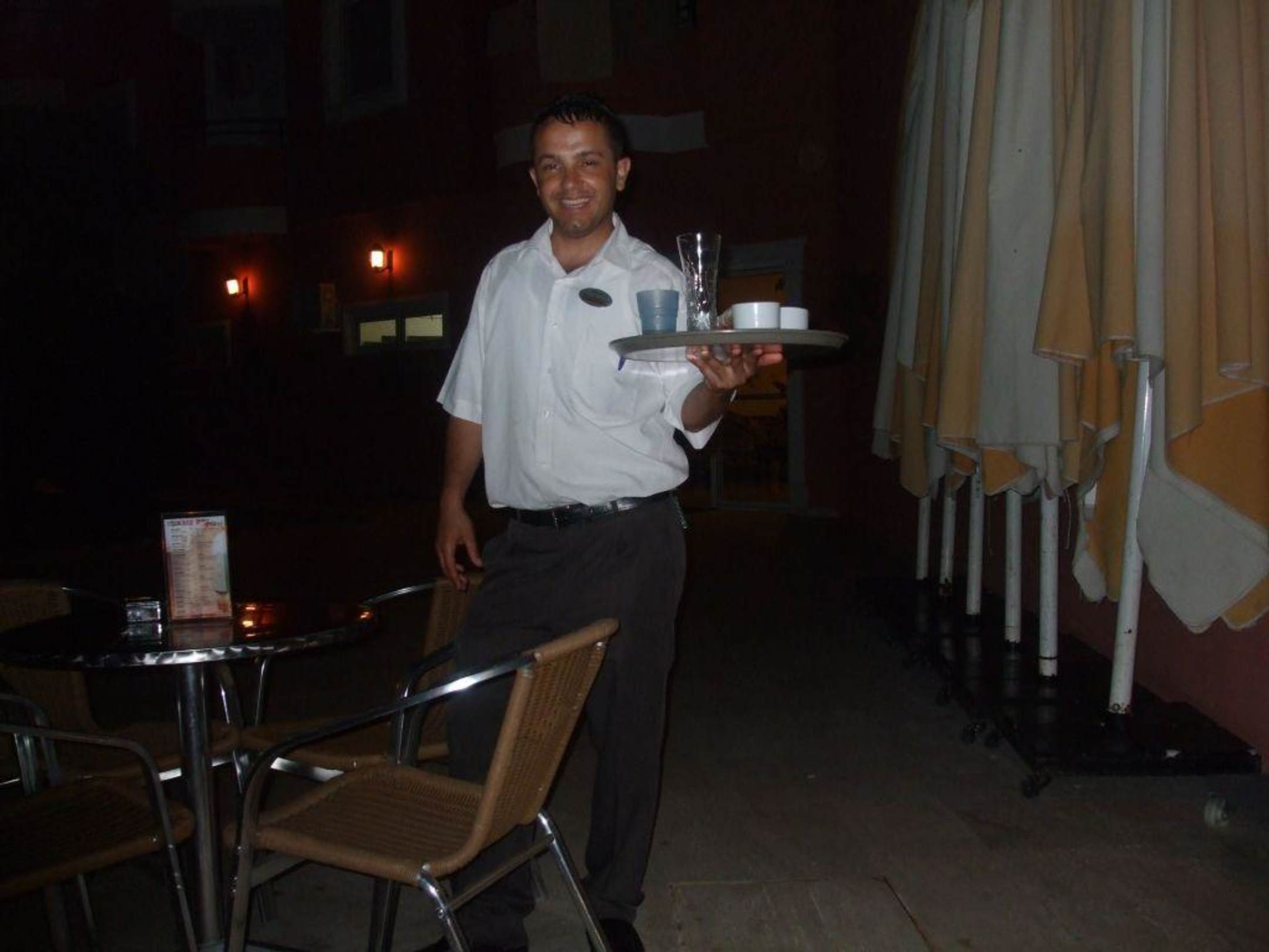 Selim op het teras aan het serveren
