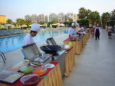 Aufstellung fürs Abendbuffet mit Showkochen