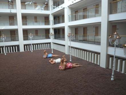 Innerhalb des Hotels mit liegenden Skulpturen