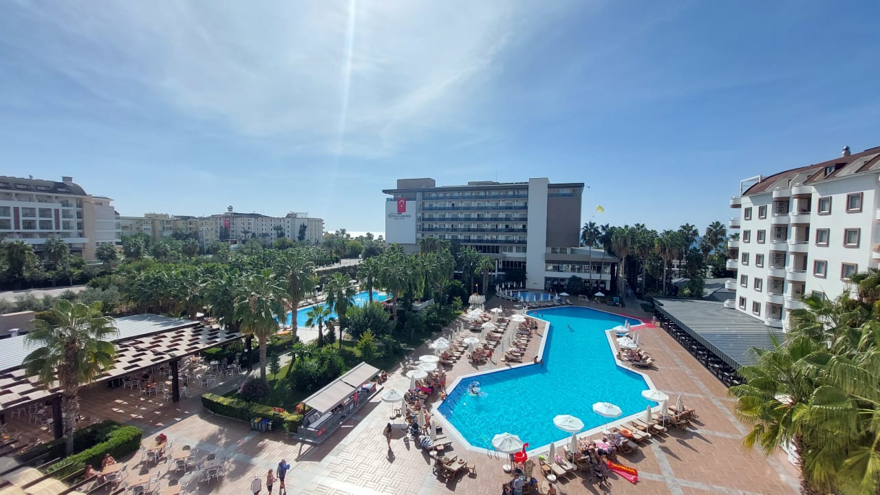 Hotelanlage mit beiden Pools. Ganz hinten sieht man das Meer.