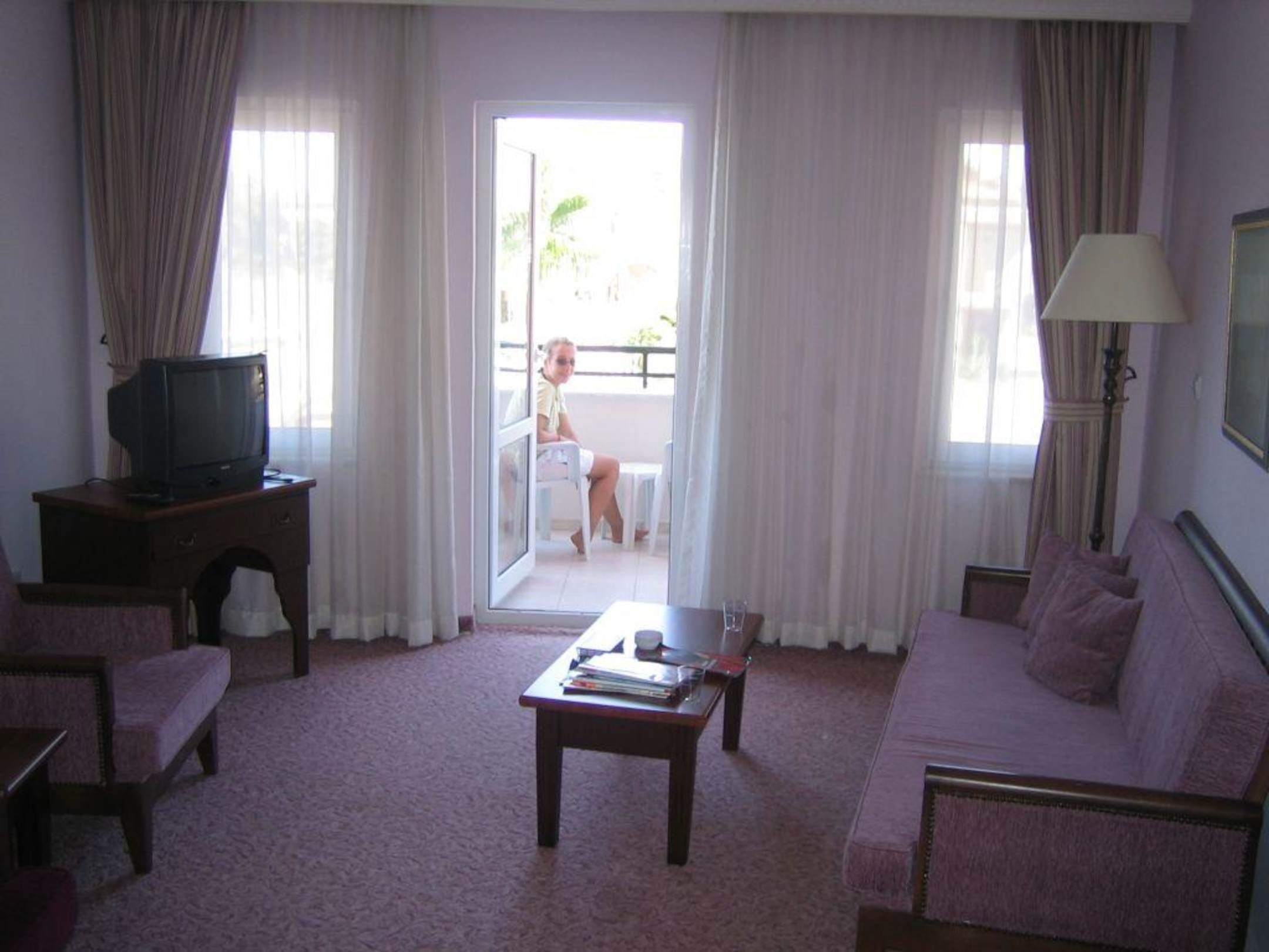Das Wohnzimmer mit Blick auf den Balkon