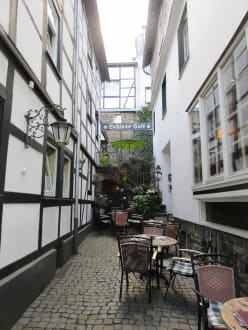 kleiner Hof zwischen Cafe und Hotelgebäude