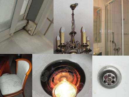 -oben rechts sieht man, dass die Duschkabine nicht weiter zu ging (Zimmer Nr. 208) -halb heraushängende Lampen -viel Dreck
