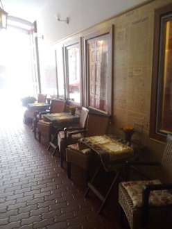 в арке стоят столы и стулья