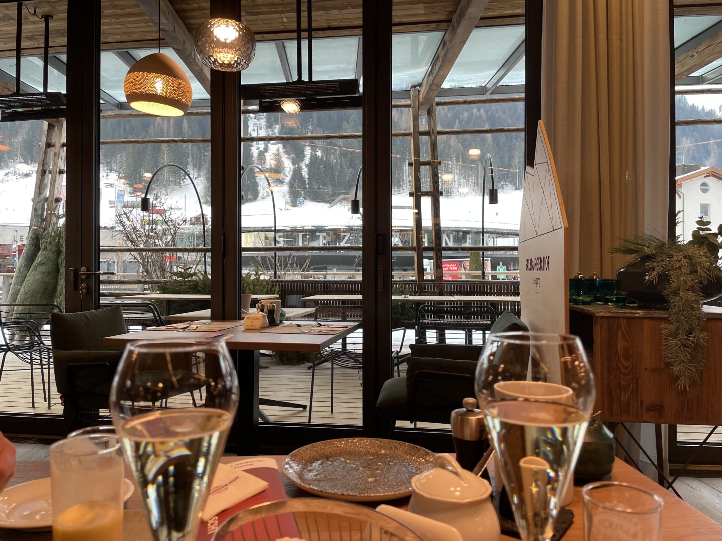 Restauranttisch mit Blick zur Bahnstation