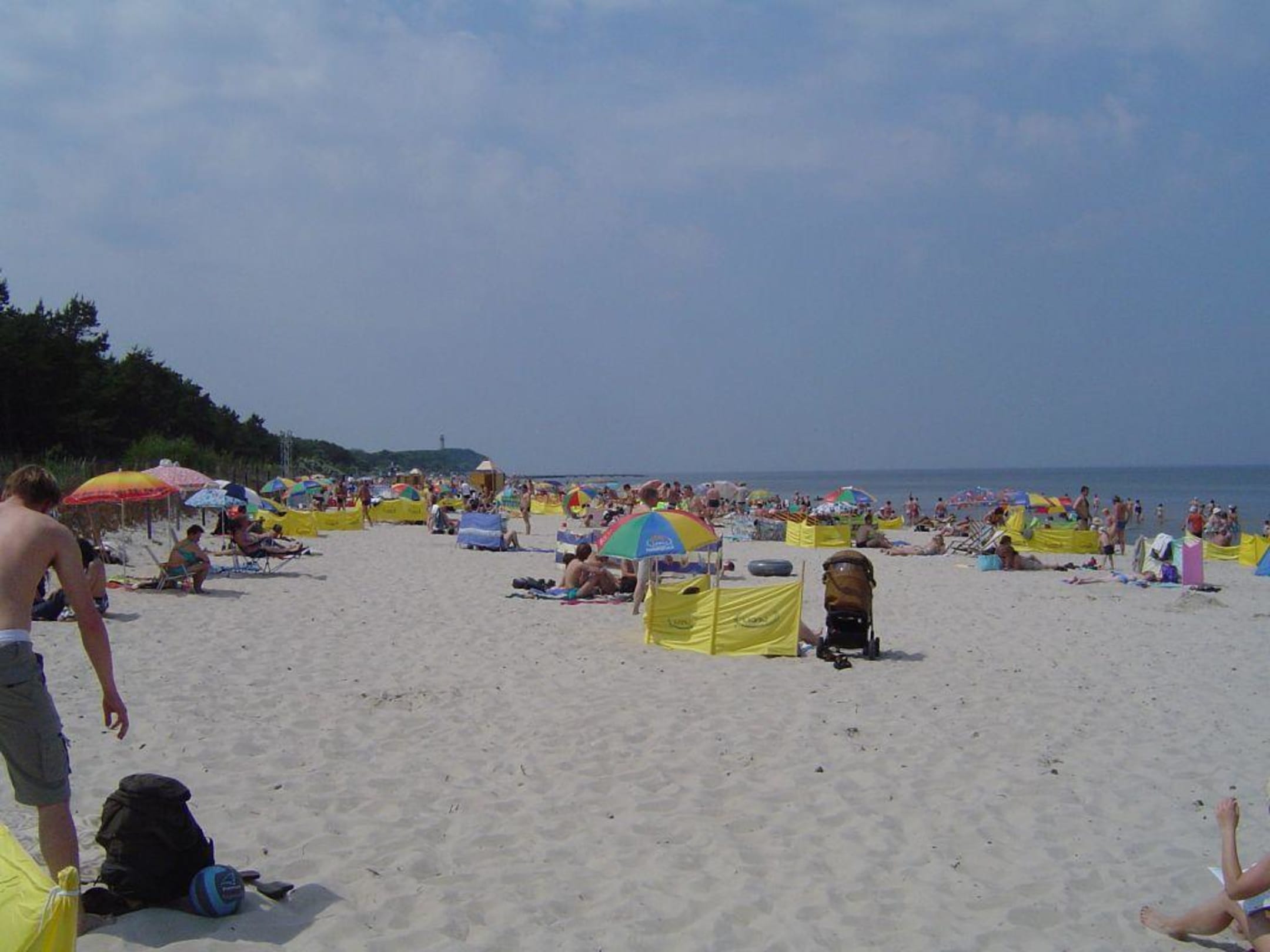 Sandra SpaDer Strand befindet sich ca. 300 m vom Hotel entfernt. Die Sonnenschirme, der gelbe Windschutz und eine dazugehörige Tragetasche gehören zur Hotelzimmerausstattung.