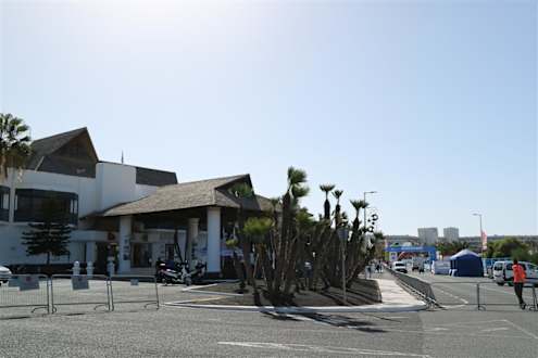 Hoteleingang, abgesperrt für den Marathon...