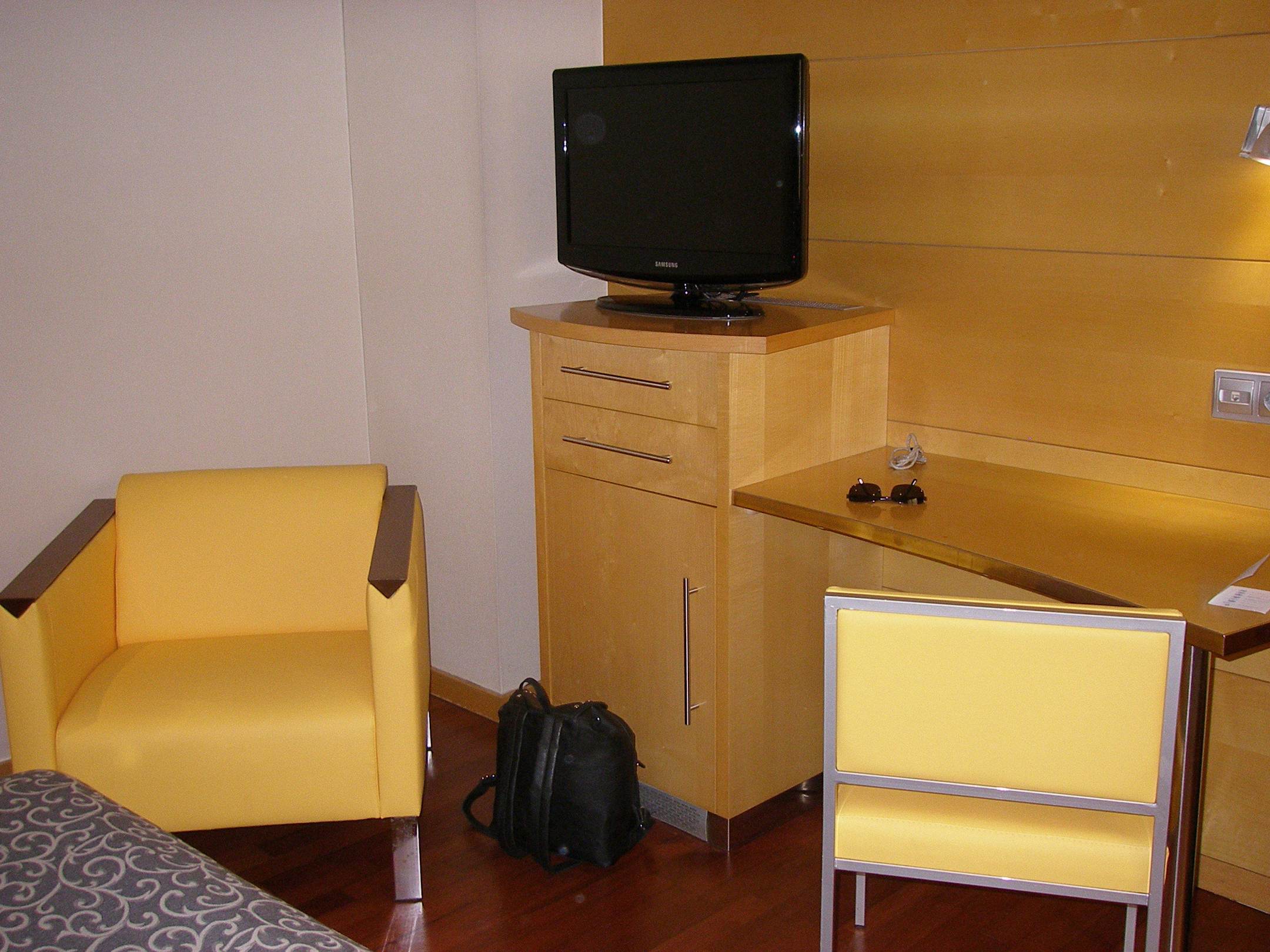 Schreibtisch und Fernseher in dem kleineren Zimmer