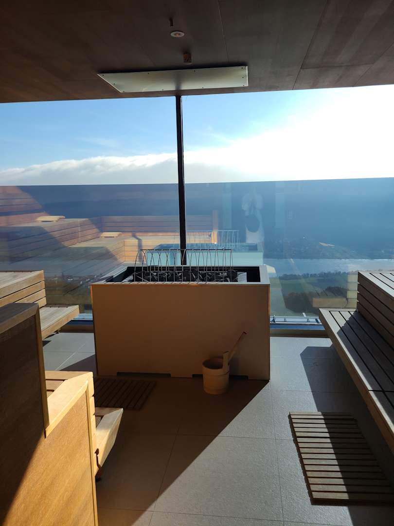 Finnische Sauna mit Blick auf die Donau