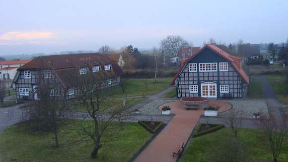 Links: Fachwerkhaus (Zimmer), rechts: Badehaus