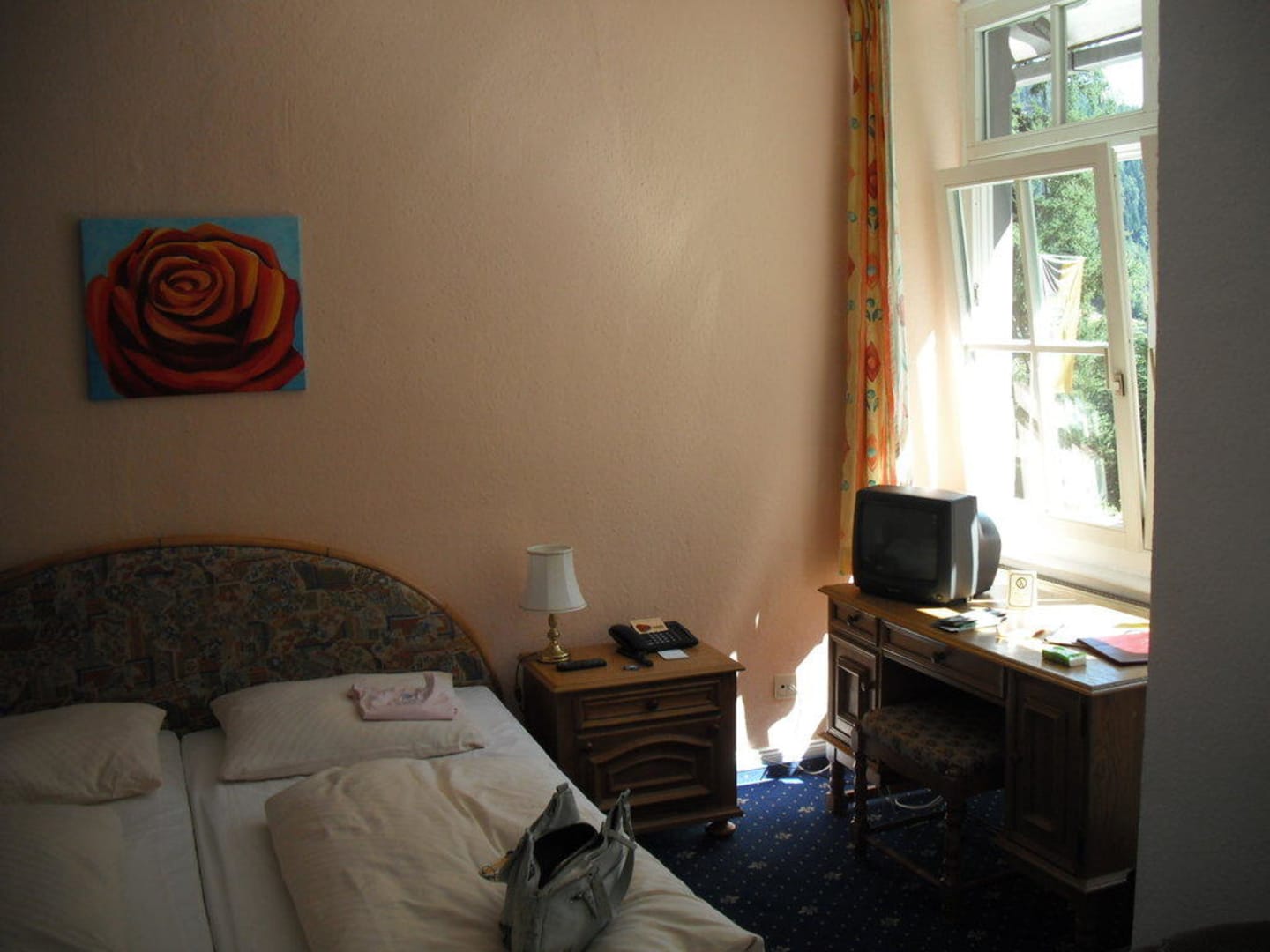 Blick auf das Bett/den Schreibtisch
