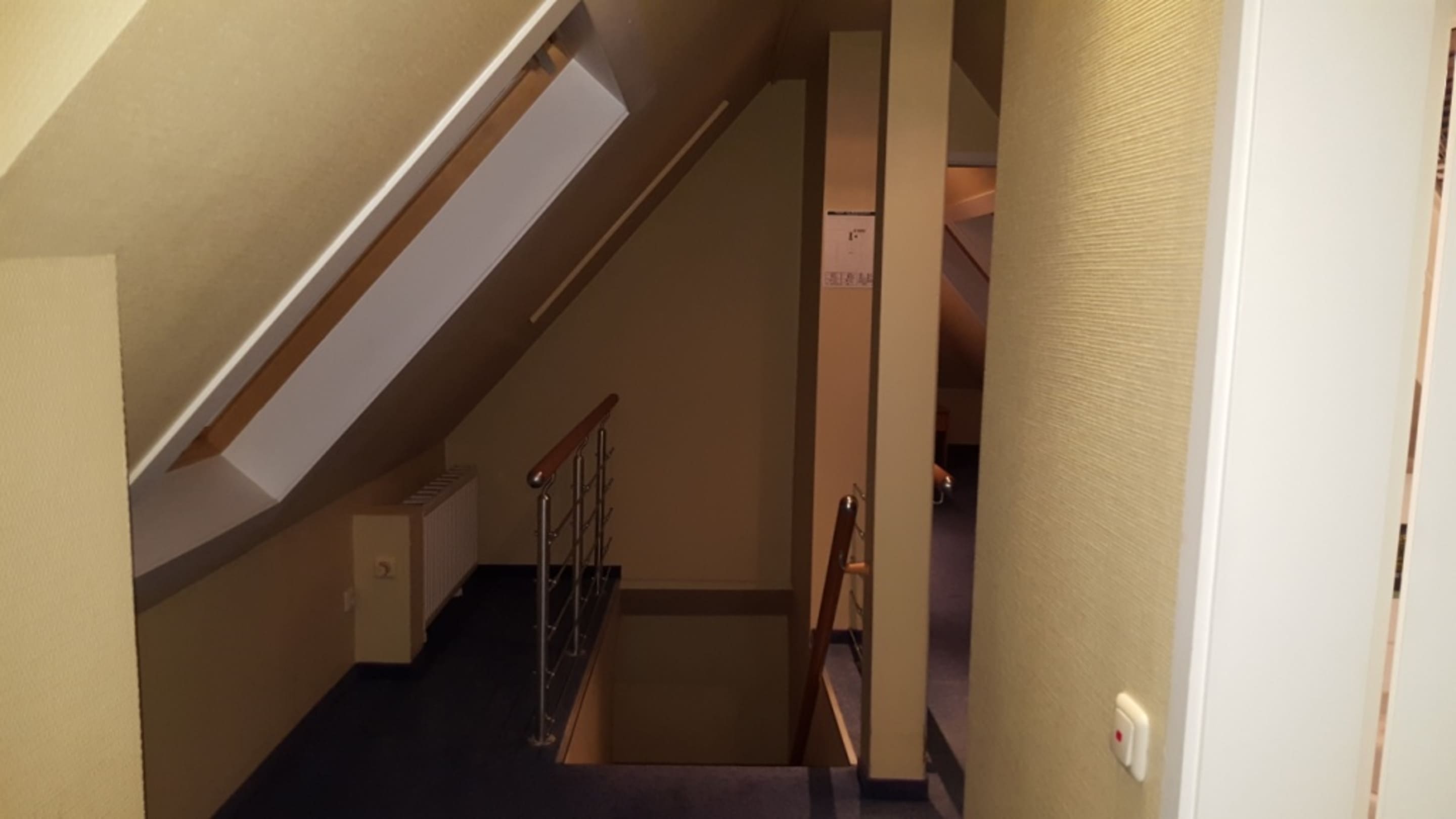 Übergang zum nächsten (offenen) Zimmer. Die Treppe führt hinunter zum Ausgang des Zimmers.