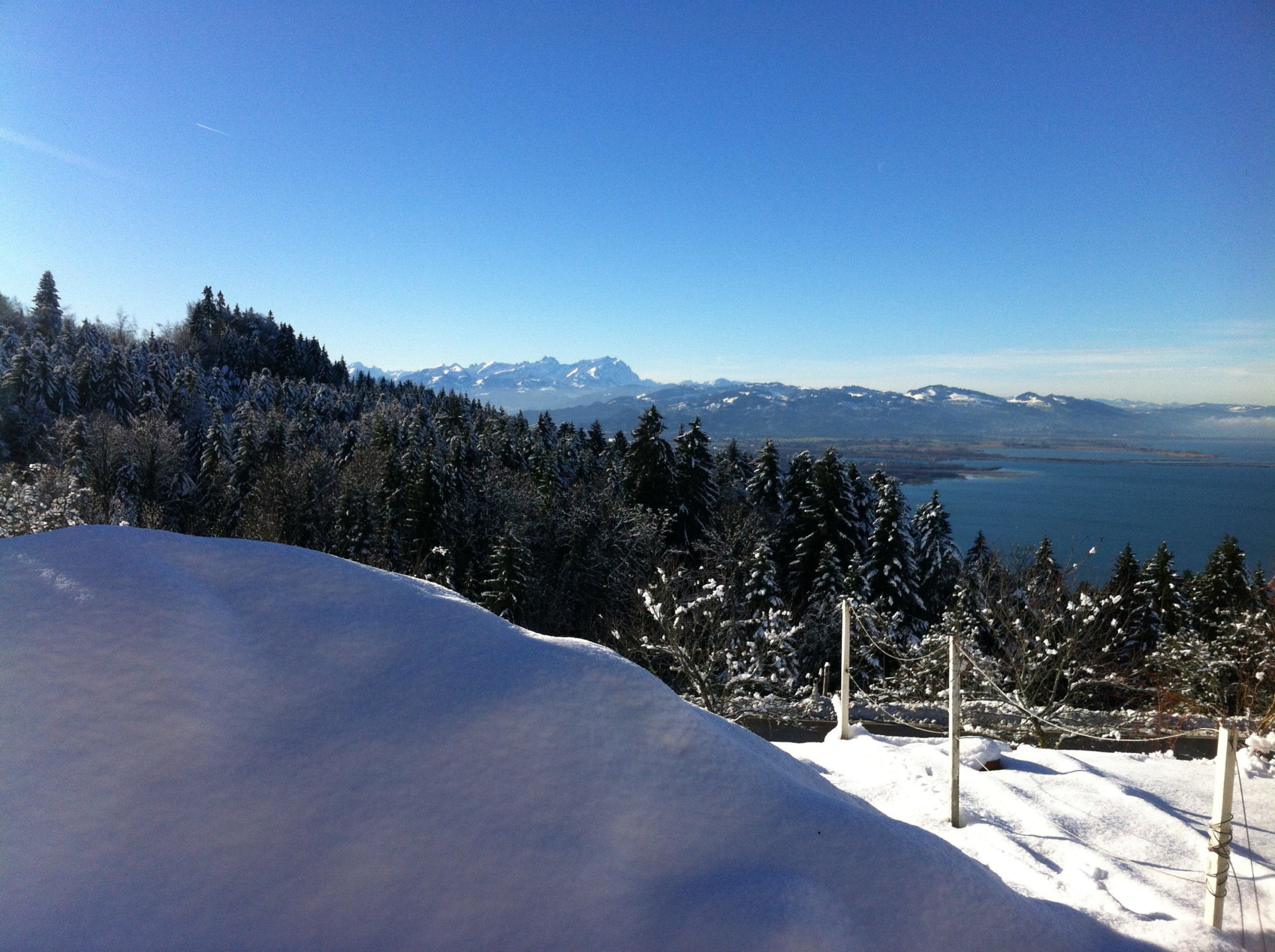 Oben Schnee unten See