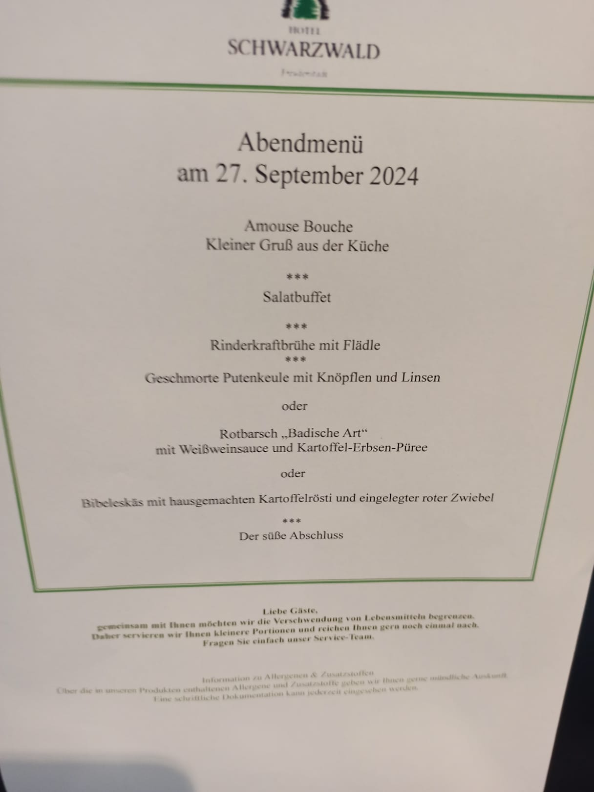 Beispiel für Abend-Menü